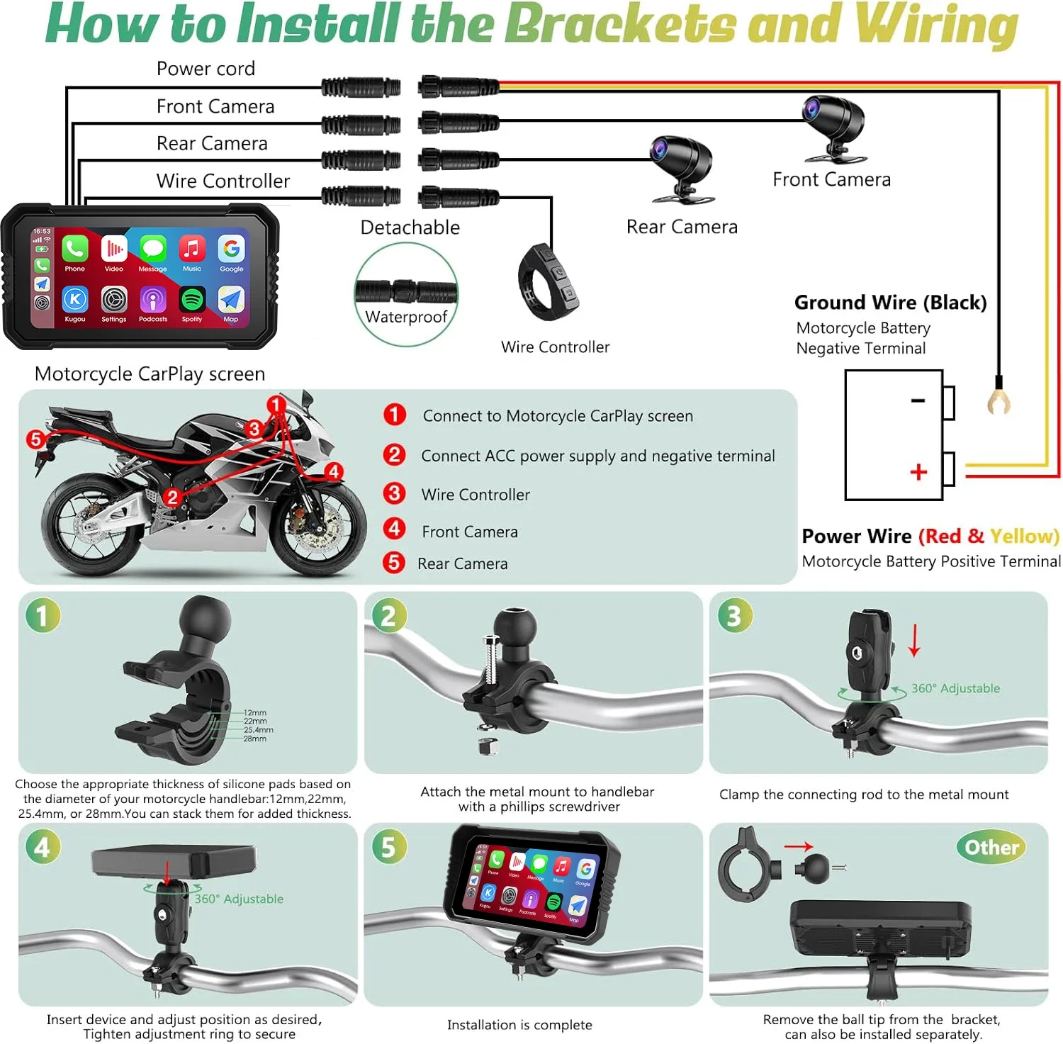 Plusieurs angles pour montrer la qualité de fabrication, le style de montage et la résistance aux intempéries pour les motards Motorcycle.